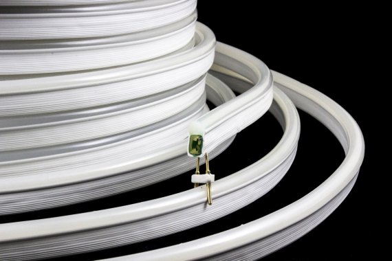 Гибкий неон или холодный неон – это эластичный ПВХ кабель с равномерно распределенными светодиодами внутри, что позволяет создать ровный мягкий свет. Он очень легок в эксплуатации и монтаже, часто используется в декоративном освещении фасадов, деревьев, рекламных конструкций, тоннелей, мостов и т.д.) Отлично подходить для декоративной подсветки внутри помещений (потолков, полов и т.д)