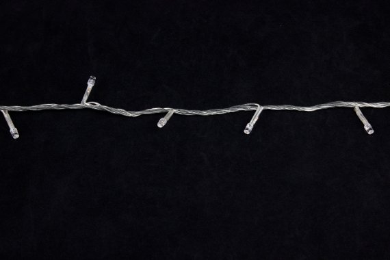 Длина гирлянды 7 метров, по все длине равномерно располагаются 100 LED лампочек. Провод прозрачный, силиконовый.