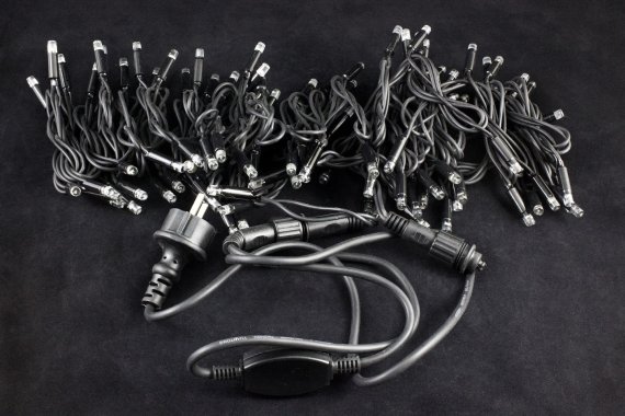 Нить-каучук 100 Led СИНИЙ 10м. flash-w; пров-черн ?3мм, соединяется, IP 65