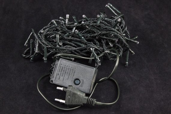 Длина гирлянды 7 метров, по все длине равномерно располагаются 100 LED лампочек. Провод черный, силиконовый.