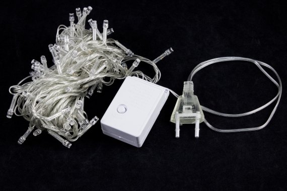 Длина гирлянды 7 метров, по все длине равномерно располагаются 100 LED лампочек. Провод прозрачный, силиконовый.