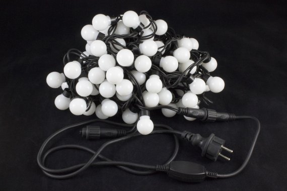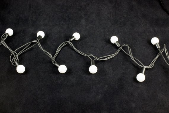 Нить-шарик 3см. RGB 100 led МУЛЬТИ 10м; каучук-черн-пр 3мм, соединяется, IP 54