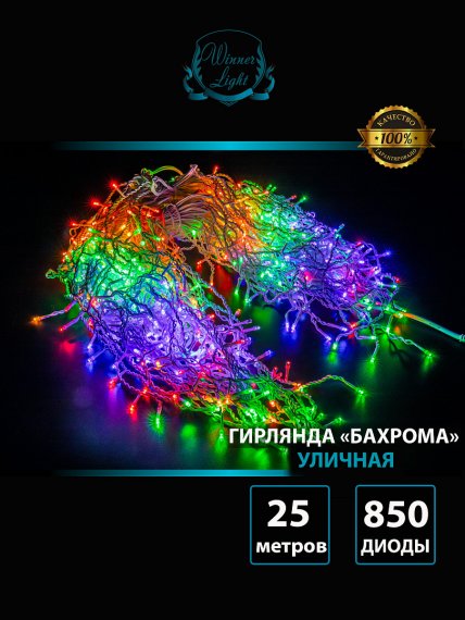 Гирлянда Бахрома-ПВХ 850 Led МУЛЬТИ 25м имеет несколько ключевых характеристик, которые делают ее выдающейся вариантом для украшения.