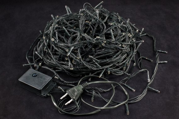 Длина гирлянды 26 метров, по все длине равномерно располагаются 400 LED лампочек. Провод черный, силиконовый.