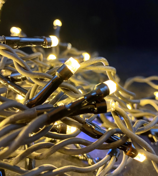Бахрома-каучук 408 Led ТЁПЛО-БЕЛЫЙ 12x0.6x0.4x0.3; пров-черн. ?2,2мм, соединяется, flash-w, IP 54