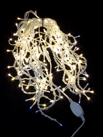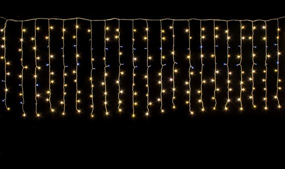 Длина гирлянды 3 метра, по всей длине равномерно располагаются 20 нитей по 1 метра равные 240 диодам среди которых имеются яркие флеш диоды которые ярко вспыхивают и придают эффект мерцания. Морозостойкий, водонепроницаемый, белый ПВХ провод идеально подходит для использования гирлянды на улице. Конструкция светодиодной гирлянды со степенем защиты IP54 обеспечивает надежность и абсолютную безопасность в её эксплуатации. Уличная гирлянда работает от сети 220 Вт. LED-гирлянды данного типа соединяются между собой, что позволяет нарастить гирлянду в длину и создать уникальные композиции. Уличная гирлянда ЗАНАВЕС отлично подойдет для иллюминации фасада вашего дома, беседок или больших веток деревьев.