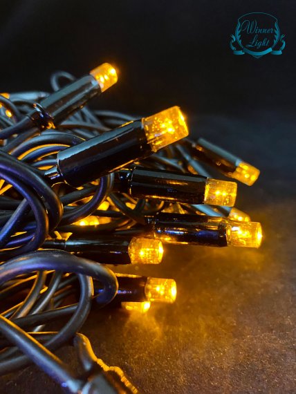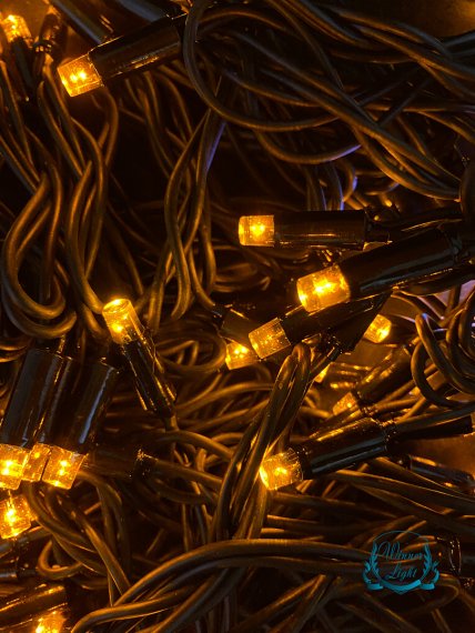 "Уличная светодиодная гирлянда НИТЬ цвет Желтый 10 м. 100 LED от сети черный каучуковый провод для улицы - заряжена на радость и праздничное настроение!