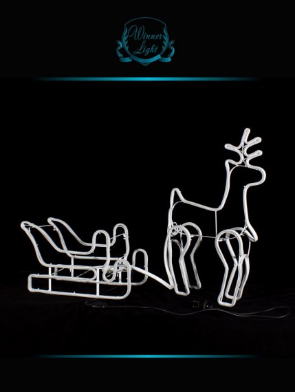 Winner Олень с санями малый 60*100см. СИНИЙ, 3033-60B, гибкий неон SMD, IP 65 Светящиеся фигуры