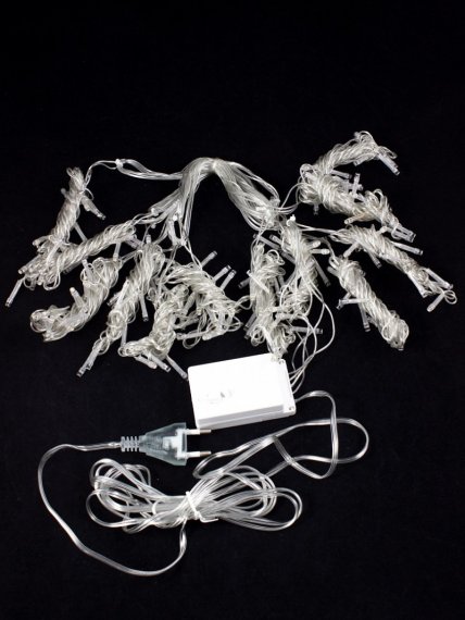 Длина гирлянды 3 метра, по всей длине равномерно располагаются нити. На качественном, прозрачном, силиконовом проводе расположены 68 диодов среди которых имеются яркие флеш диоды которые ярко вспыхивают и придают эффект мерцания.