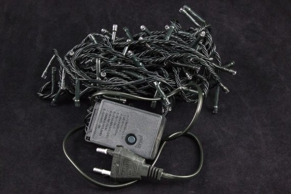 Нить 100 led ТЁПЛО-БЕЛЫЙ 7м; черн-пр, контр. кнопка, IP 20
