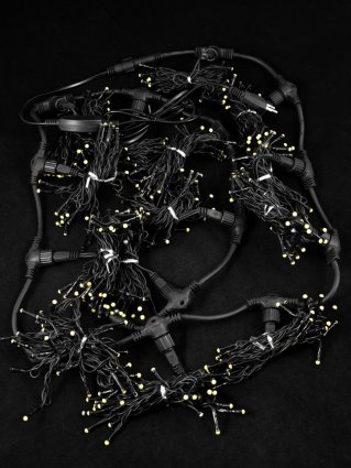 Занавес-пвх 420 Led ТЕПЛО-БЕЛЫЙ 2х3м. flash-w; пров-черн. 2мм, 14 нитей, расстояние 13 см, матовый диод, соединяется, IP 54